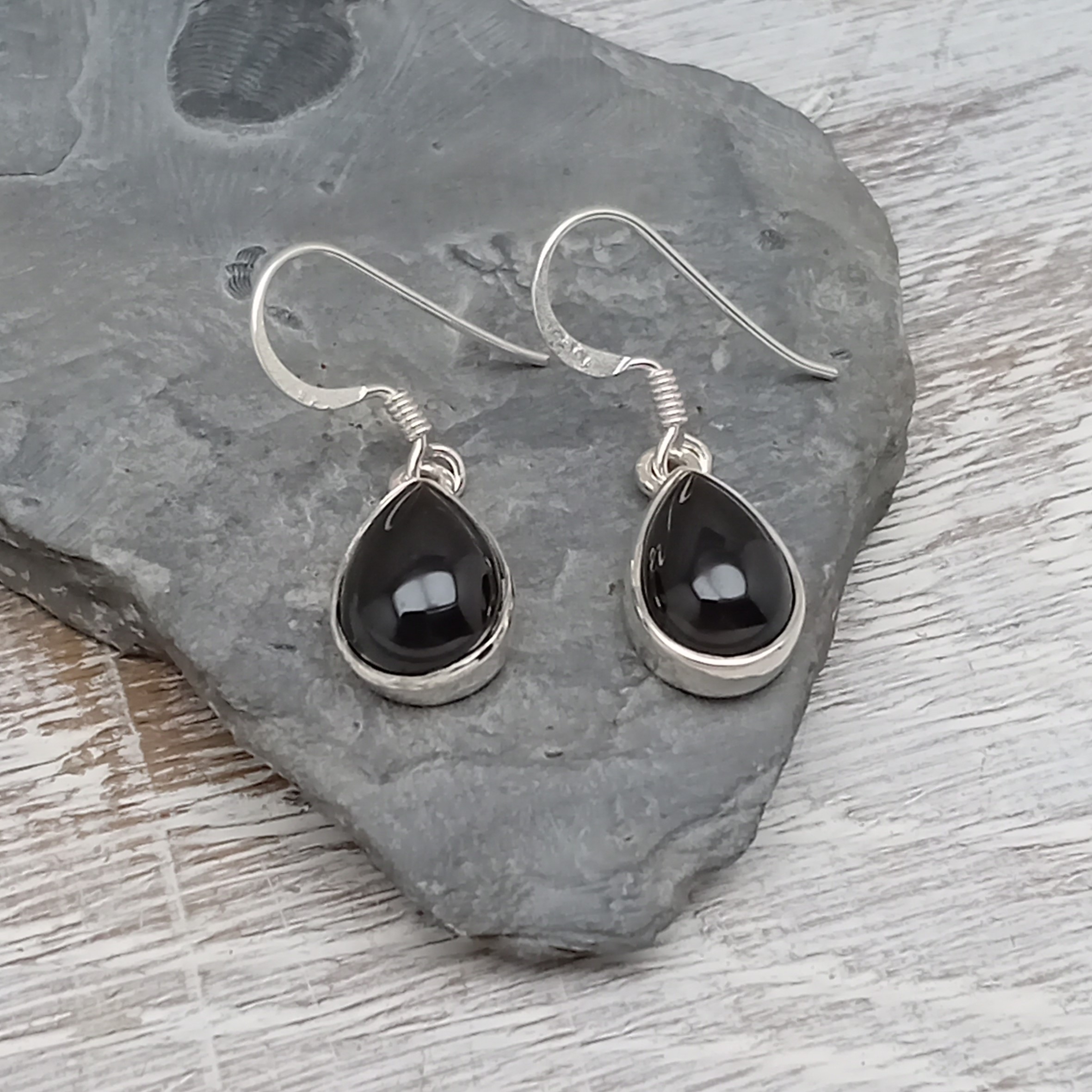 Black Spinel Teardrop Drop Earrings – 7mm x 11mm